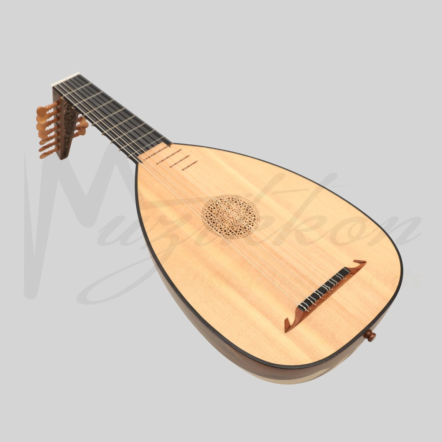 Muzikkon 7-course Descant Lute is a beautiful short necked sized lute. Descant, refers to its size; placing this lute just above the alto lutes. It usually carries 13 strings in 7 courses with a scale length of 19.75" (500mm).