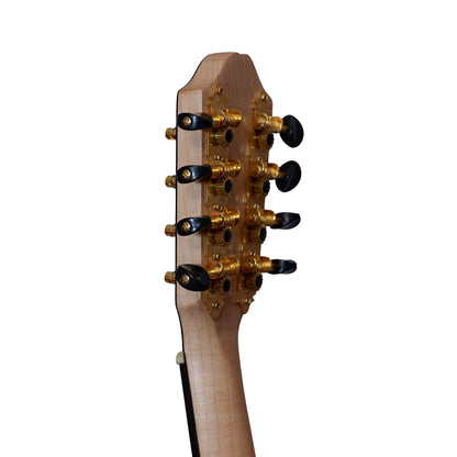 Our four course, eight string, Greek Bouzouki is a beautiful instrument with a rich history. The fingering is the same as the higher four strings on a guitar, and the same as the fingering on a ukulele. The tuning, however, is different, the recommended being Cc Ff aa dd.