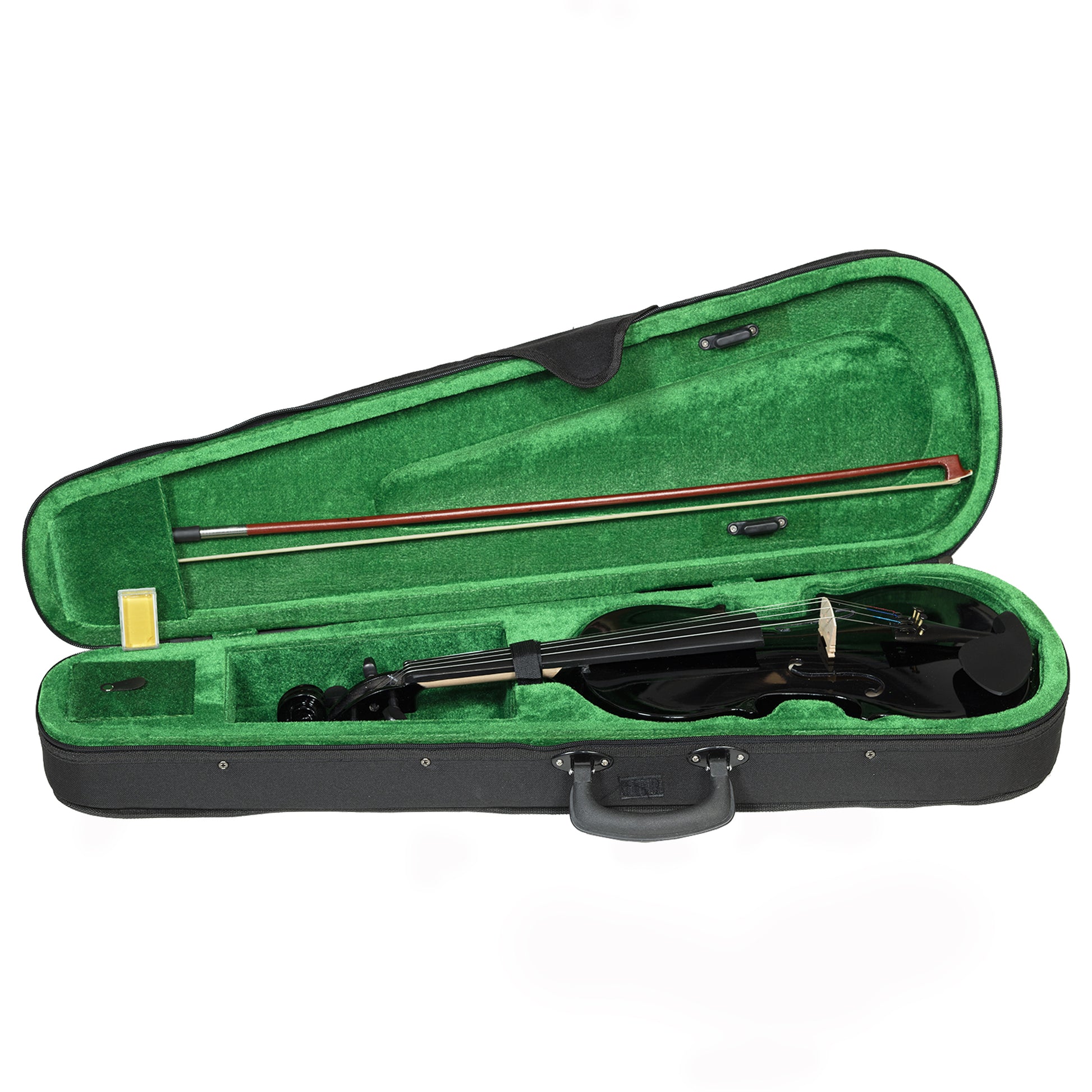 Our Heartland Black Gloss Student Violin is hand lacquered and consists of a laminated body. Quality Spruce and Maple tonewoods have been used throughout. This violin boasts a warm bright tone and easy action. This is a great introductory violin for beginners and children.This Student Violin comes with bow, rosin and hard case.