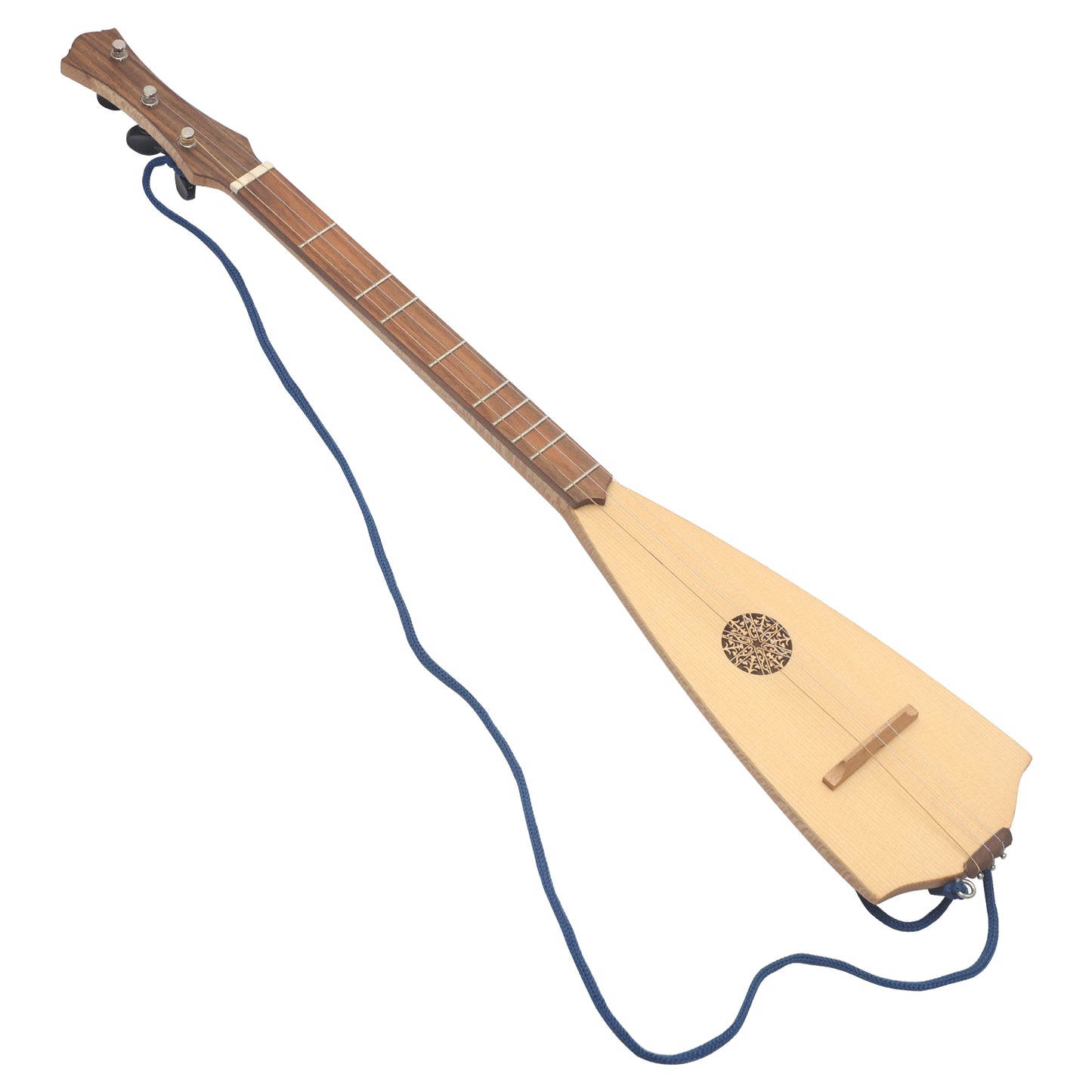 - It has three string courses: a wound string at the top, a plain center string, and a plain string at the bottom