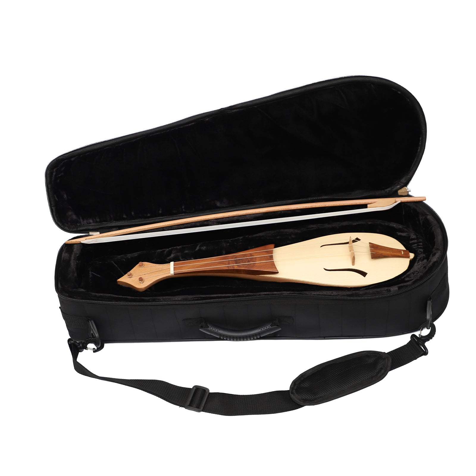 Muzikkon’s alto rebec are 3 stringed instruments based on several historic patterns. The body is carved from a single block of wood, there is no soundpost, and it has a thin, nasal, penetrating tone. A Semi Rigid Padded Case is included with this instrument.