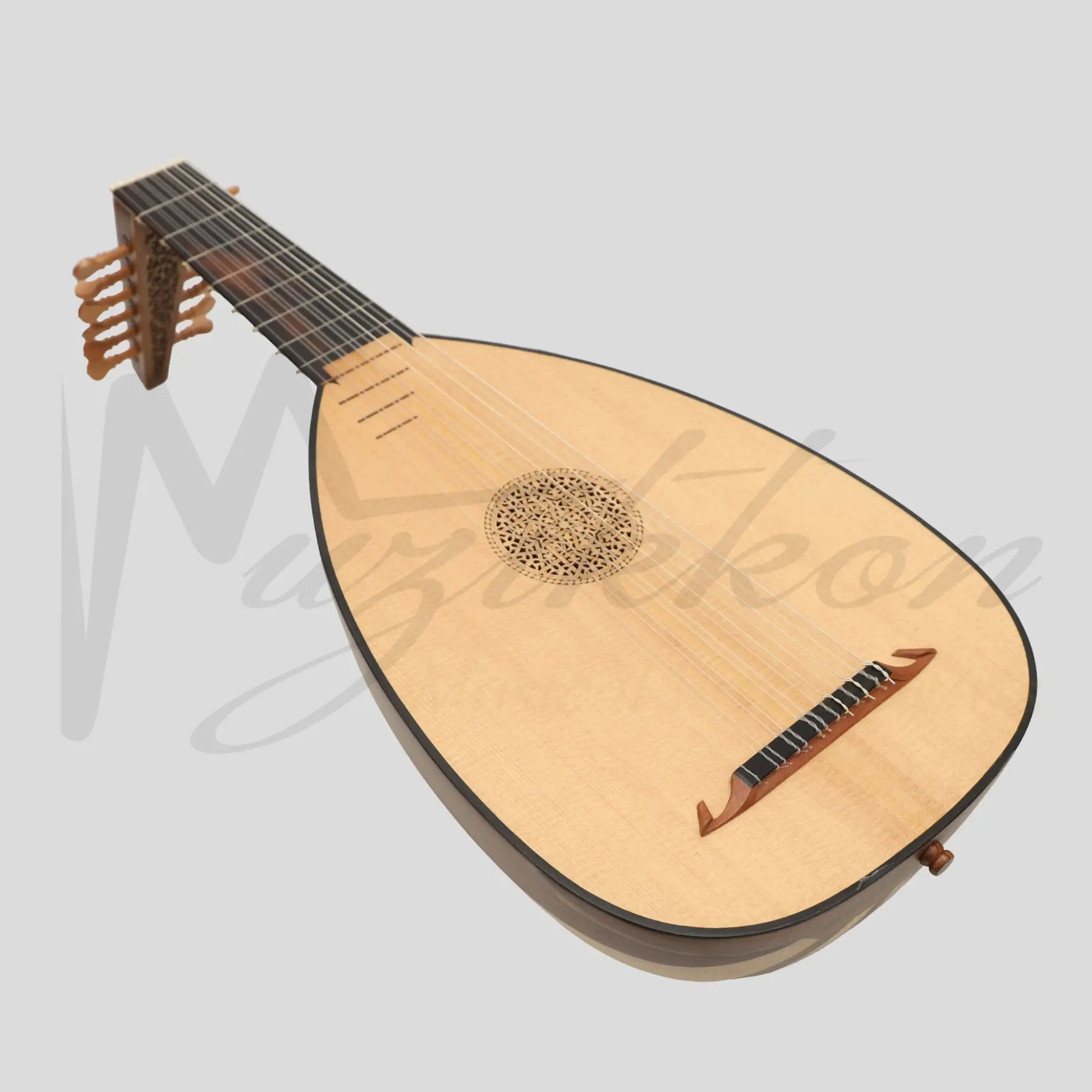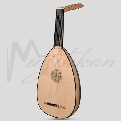 Muzikkon 7-course Descant Lute is a beautiful short necked sized lute. Descant, refers to its size; placing this lute just above the alto lutes. It usually carries 13 strings in 7 courses with a scale length of 19.75" (500mm).