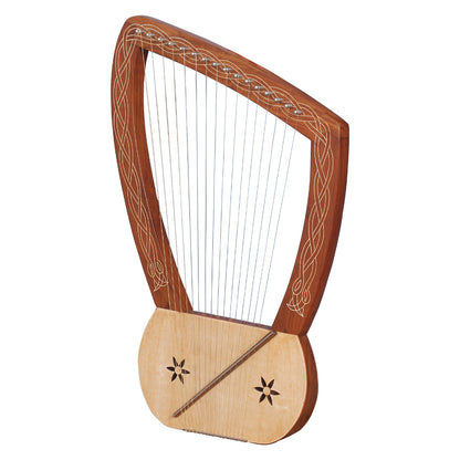 Muzikkon presents another string based musical instrument named Lyre Harp. This lyre harp has 16 metal strings which are set at each 25." Its features include inlaid arms and stars carved on the soundboard and it adds to the beauty of the instrument. The lyre harp with its accessories included are tuning tool, nylon gig bag and extra string set. It has Keys of D, tuning from longest to shortest: D3 E3 F#3 G3 A3 B3 C#3 D4 E4 F#4 G4 A4 B4 C#5 D5 E5.