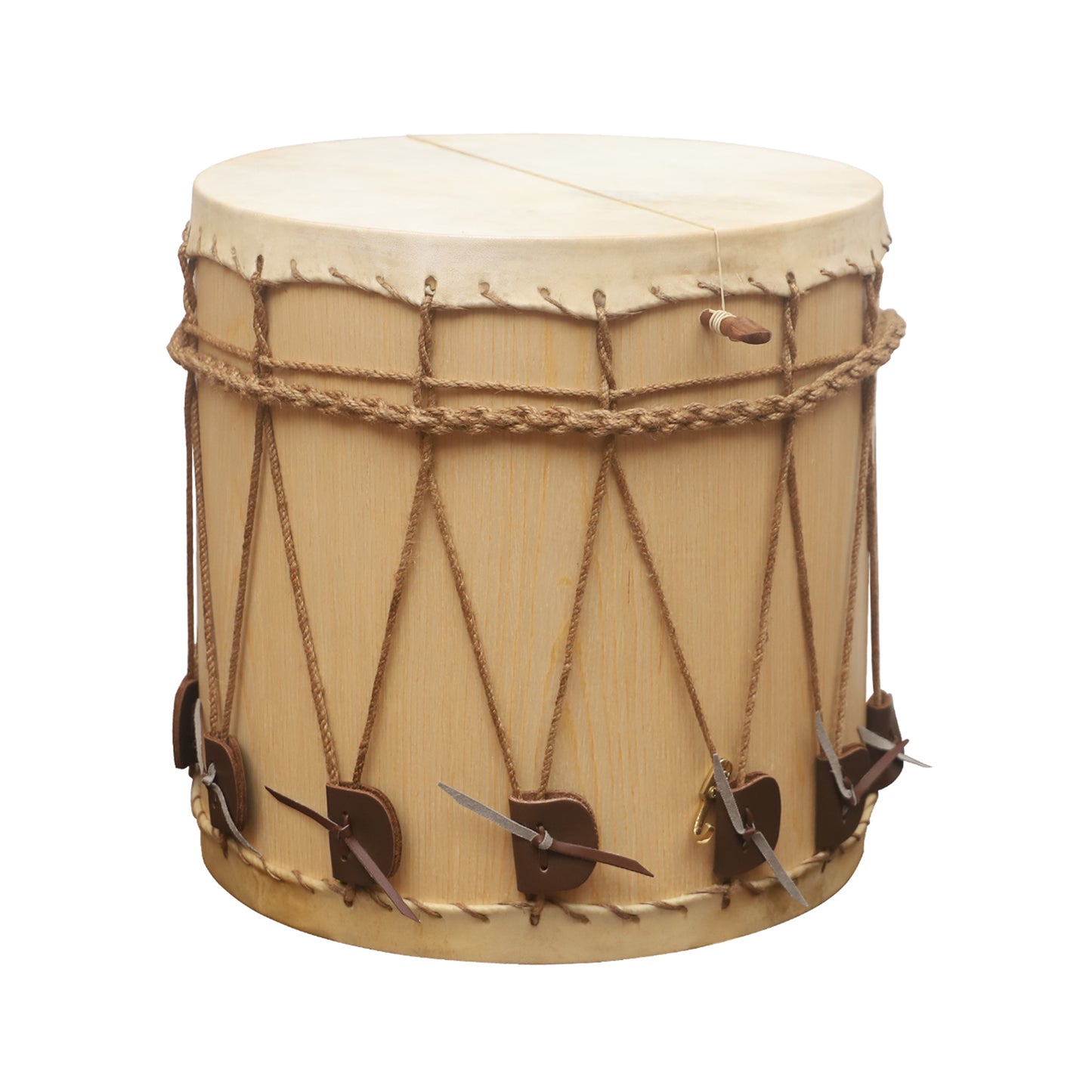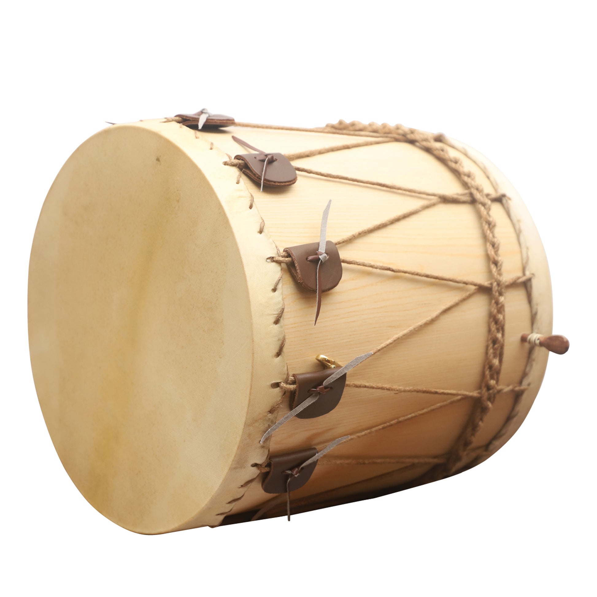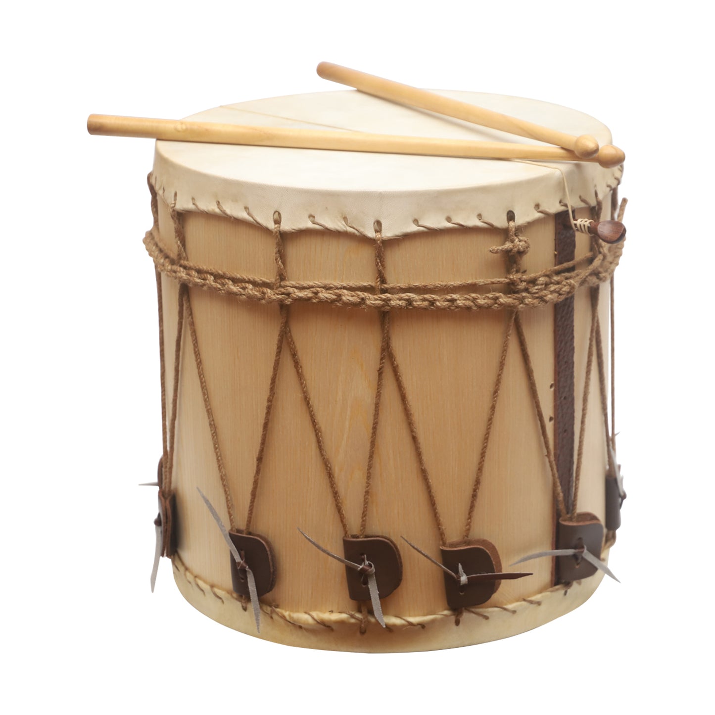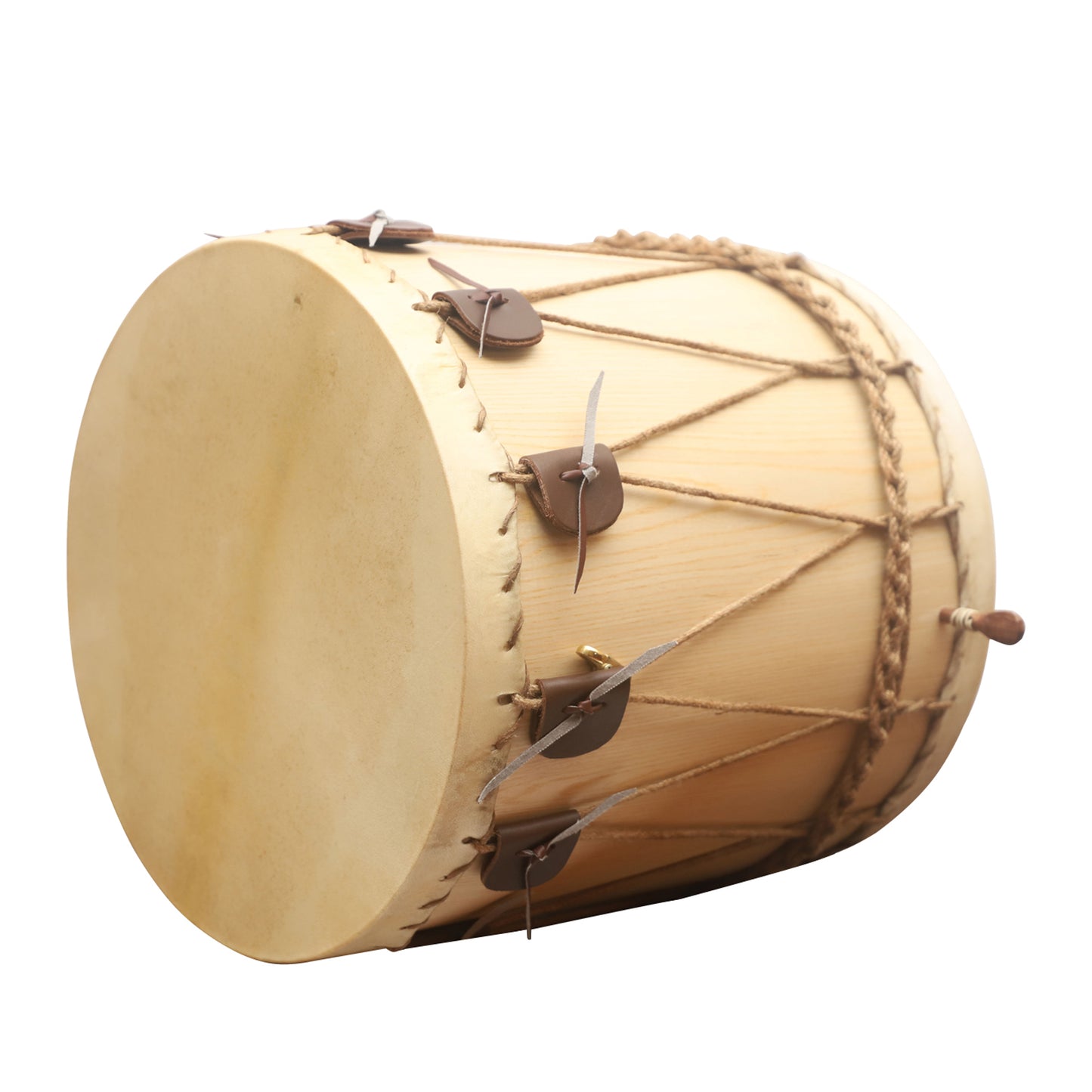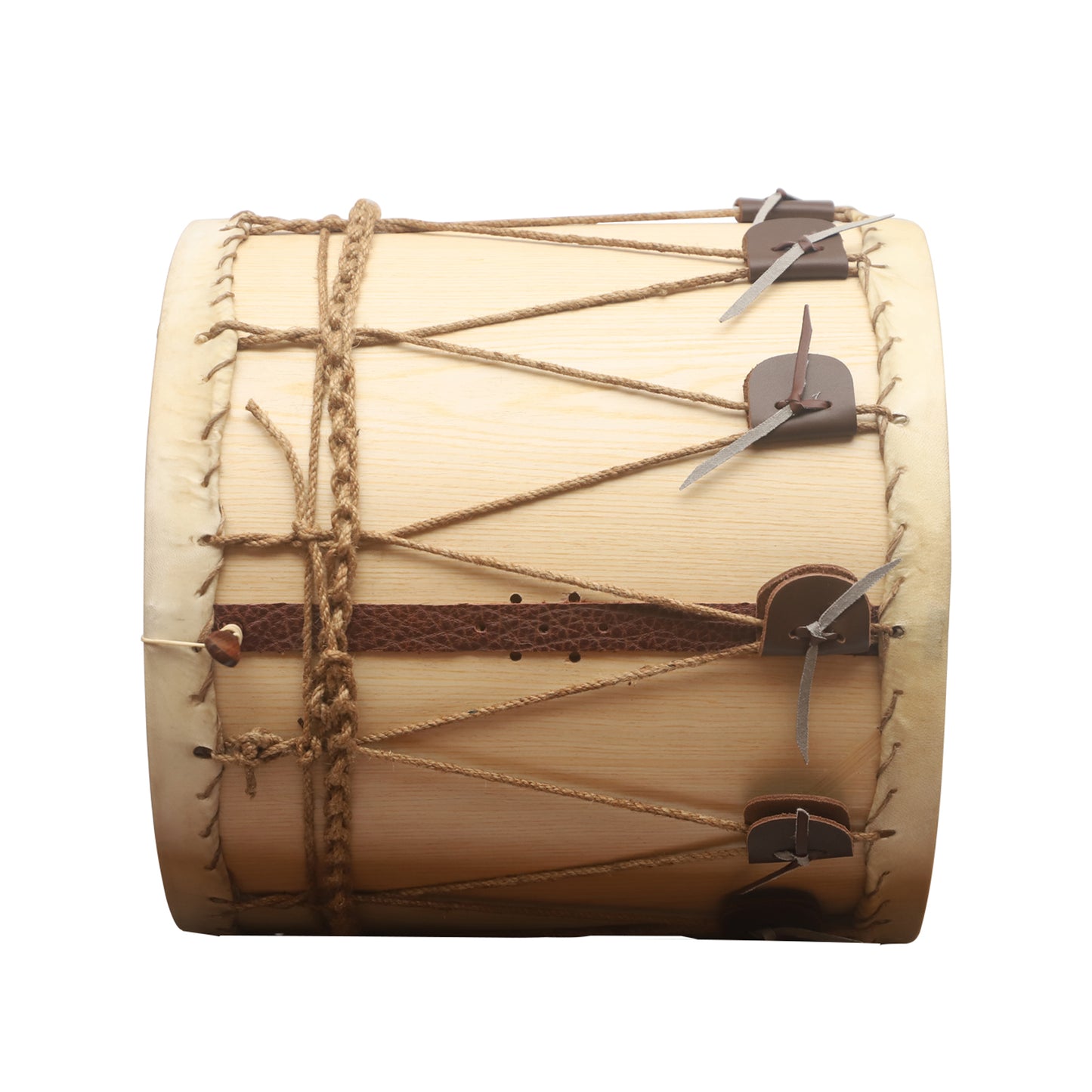 • Dual-Head Cylinder: Traditional cylindrical body with two heads, one with a snare for authentic medieval sound.