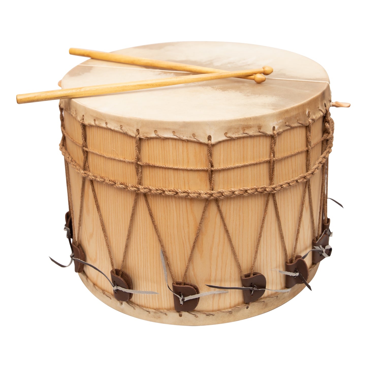 • Dual-Head Cylinder: Traditional cylindrical body with two heads, one with a snare for authentic medieval sound.