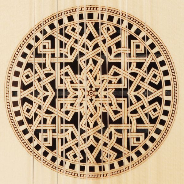 - Solid Sitka Spruce soundboard with laser engraved rosette