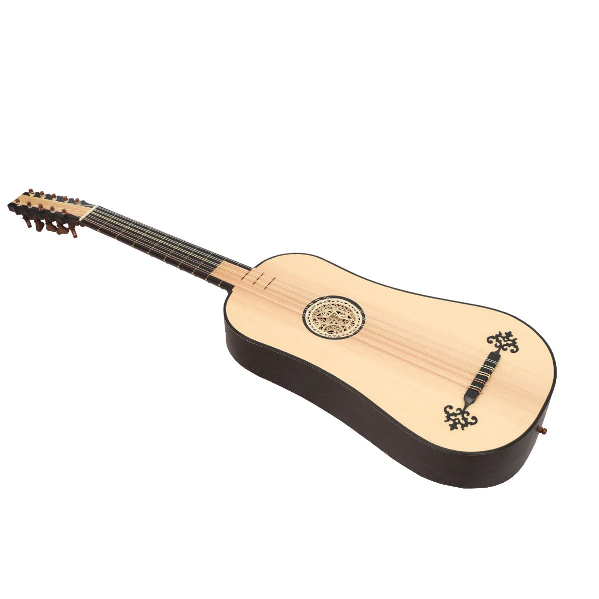• 9 Gut frets on neck and walnut frets on the soundboard